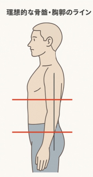 この状態では、お腹が前に突き出やすくなり、ウエストラインがぼやけてしまいます。