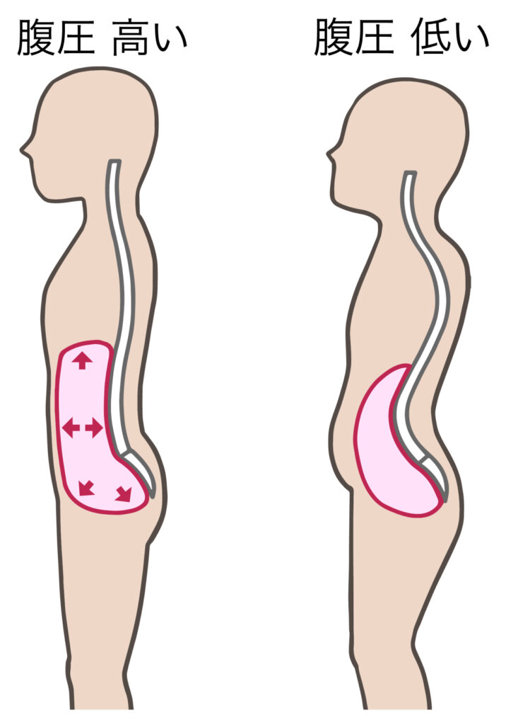 お腹の内側の圧力である腹腔内圧(腹圧)が高まります。
