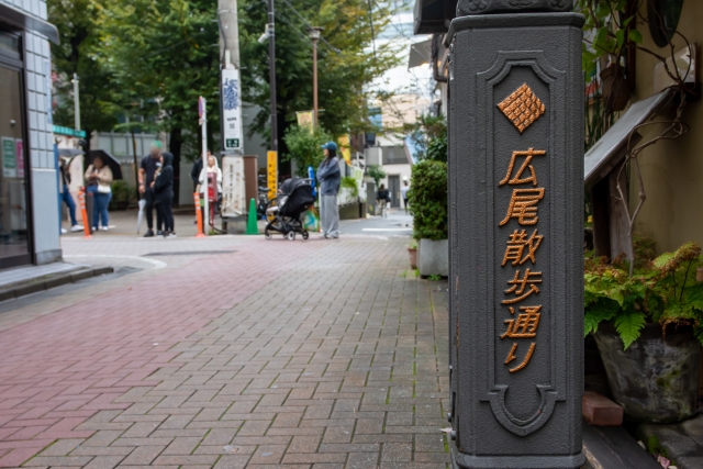 ②「広尾散歩通り」を右に曲がり、セブンイレブンを目印に直進します。