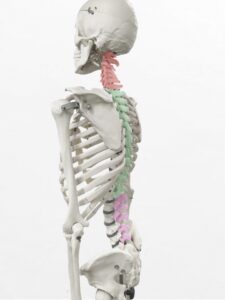これにより、頭が前につき出る(フォワードヘッド)、背中が丸くなる(猫背)といった姿勢になります。広尾で長時間PCに向かうビジネスパーソンに非常によく見られ、慢性的な肩こりや頭痛、首の痛みの真犯人となります。